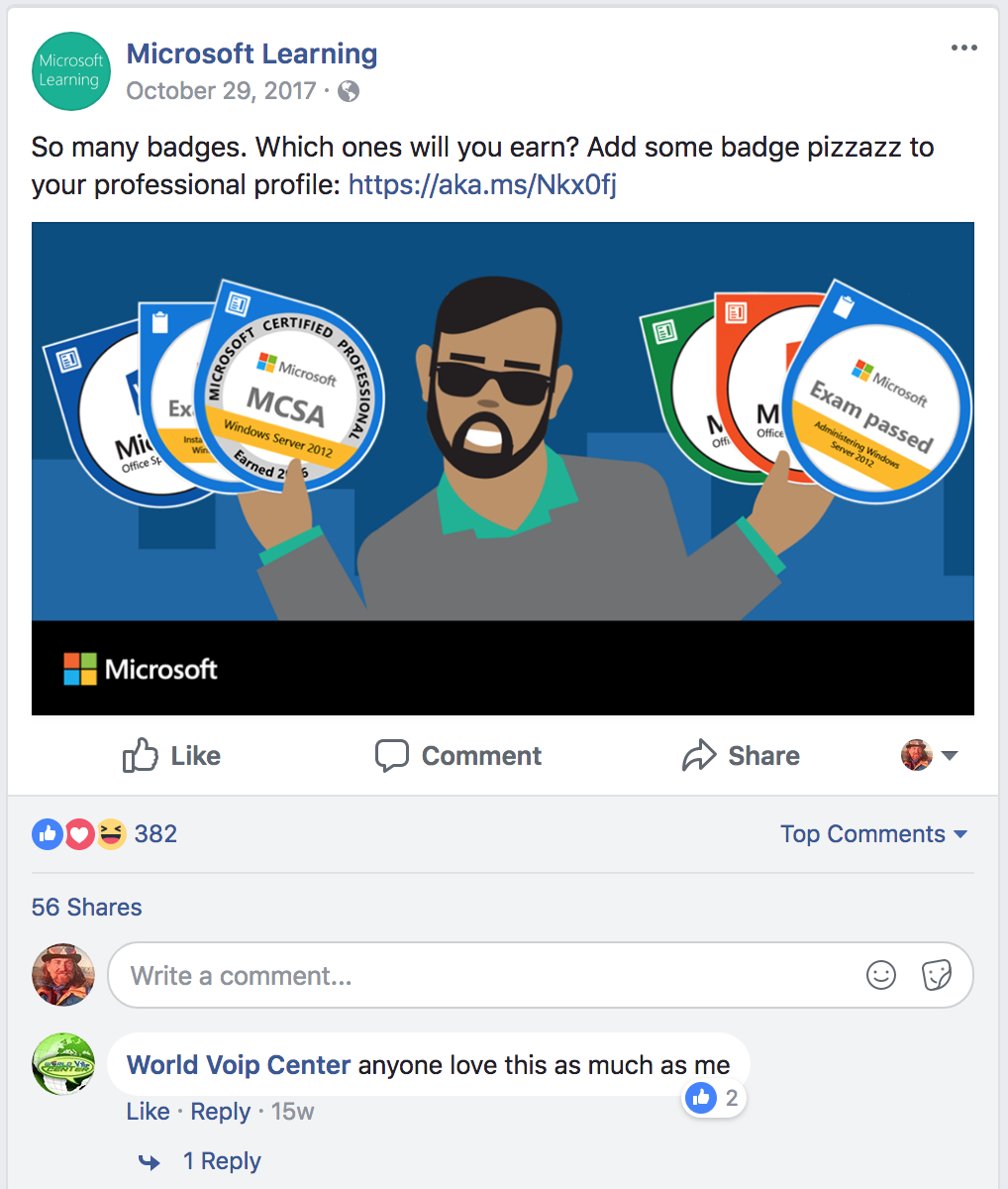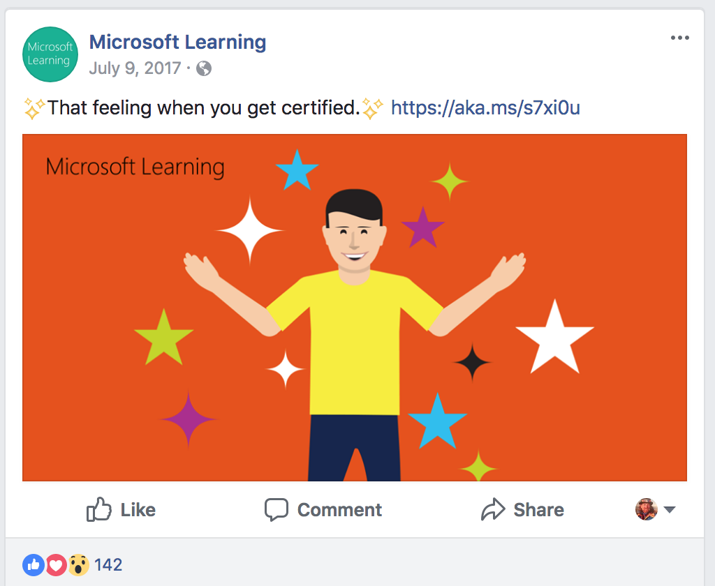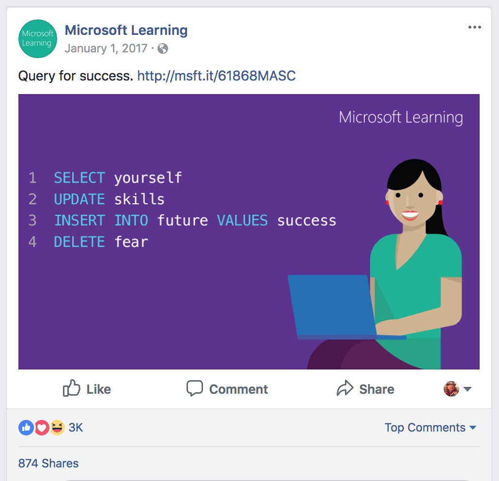 The “Select Yourself” pull marketing social post generated one of the most engagement and clicks to site than any other post in Microsoft Learning Facebook Page history.