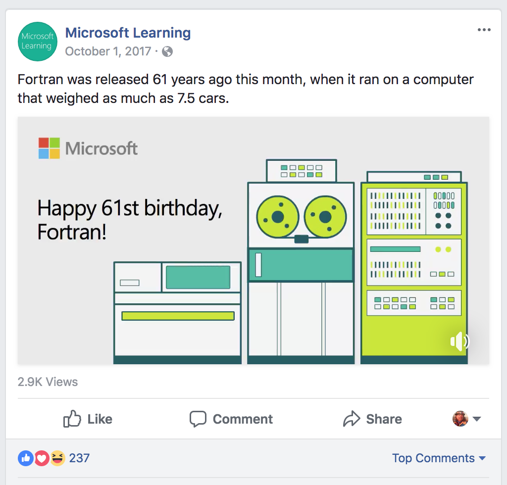 With over 8000 engagements and 235,000 impressions the Python video had the highest reach of all Microsoft Learning’s organic content. It was one of the most successful posts ever.